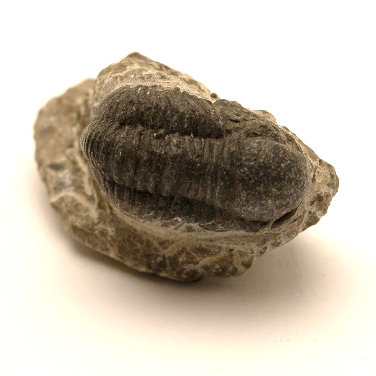 Trilobiten är framtagen ur kalkstenen med preparationsverktyg