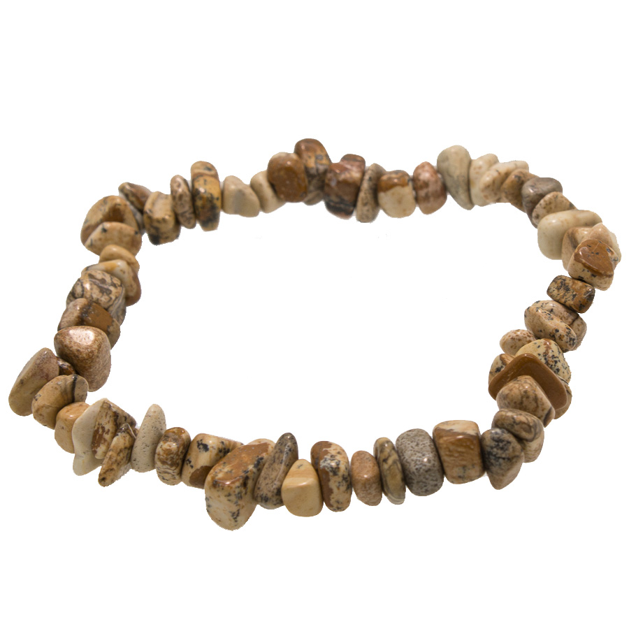 Trumlade äkta stenar trädda på elastiskt tråd.